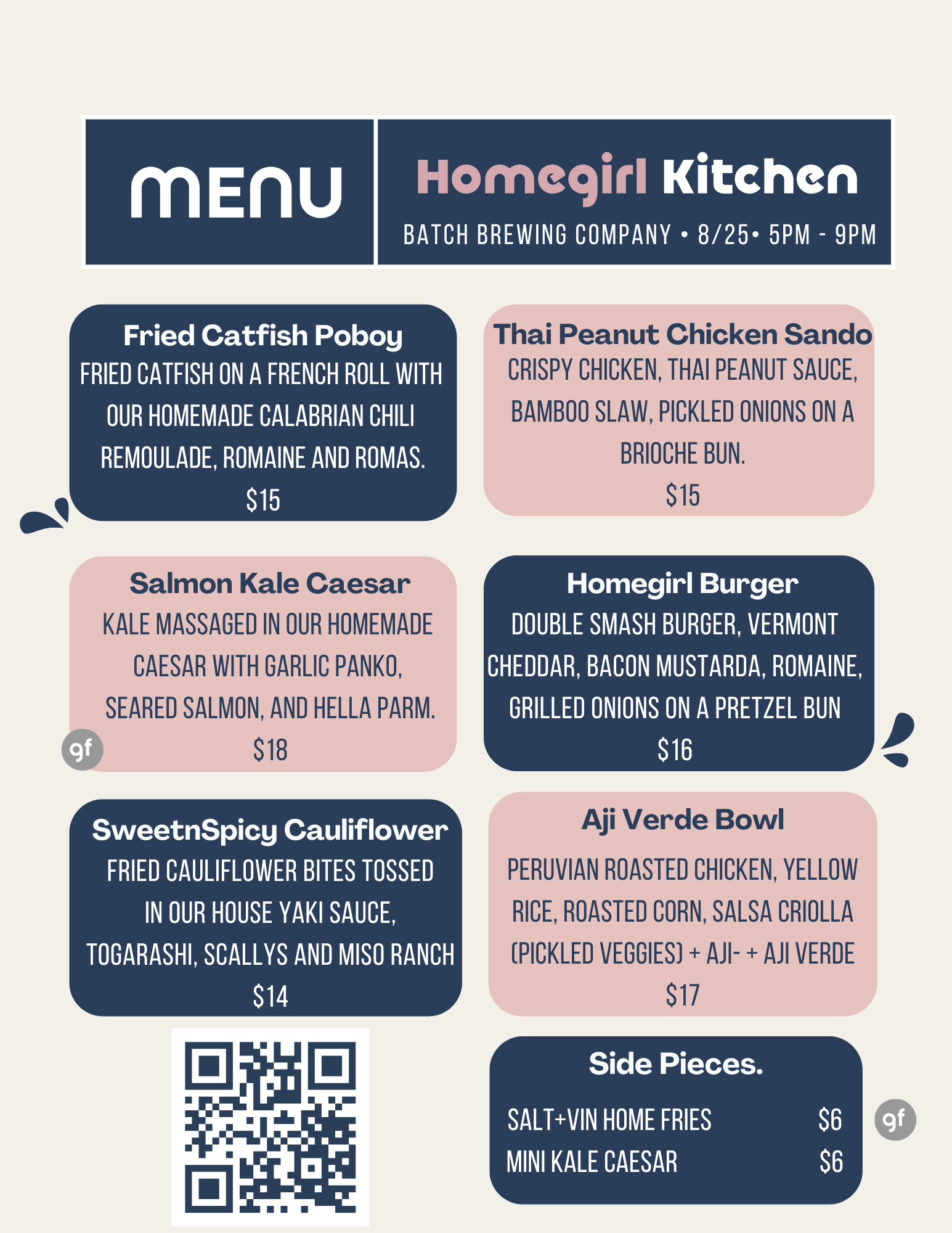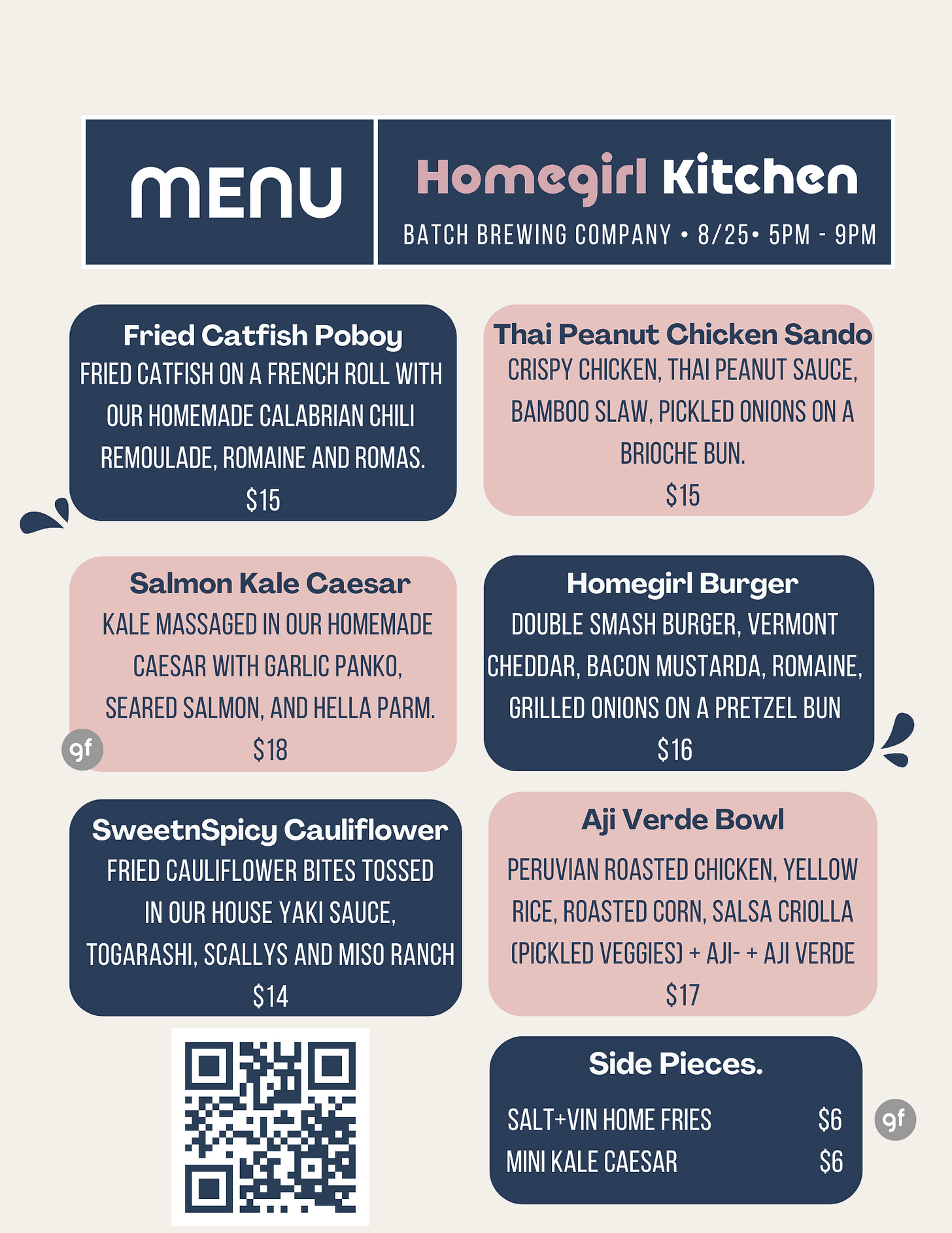 Last Monday at Batch! we've been testing out menu items for our upcoming restaurant! can't wait to see you for our last Monday of the month. let's go out with a bang and maybe we'll be back for more fun!Elle, the FoodieAug 21, 20252ShareHomegirl Kitchen x Batch Brewing MondaysOrder at Homegirl Kitchen!